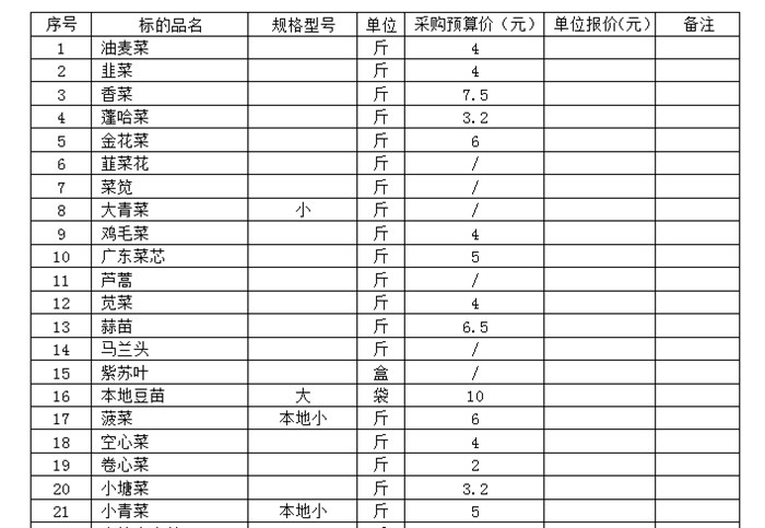 注:1、供应商按其所投项目进行报价。本次采用单价报价的形式。