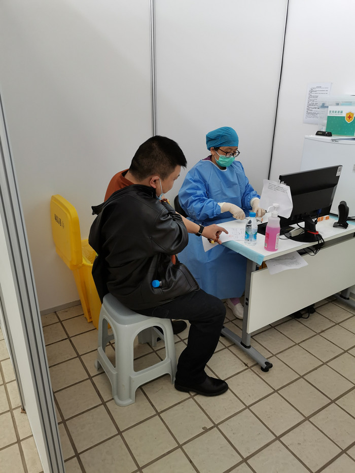 在接种现场,等待接种的员工们佩戴口罩有序排队,主动接受现场医护人员的检测和健康问询,在填写相关表格登记后有序进行疫苗注射,并按照要求前往留观区留观30分钟,整个接种工作井然有序。