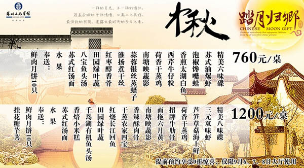 苏州三元宾馆在中秋佳节来临之际为您精心准备了两款套餐: