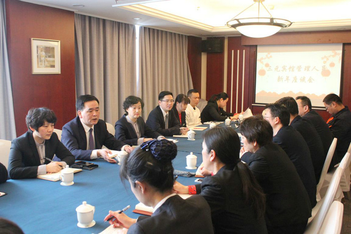 会议由俞险峰总经理主持,他希望大家畅所欲言,发挥自己的聪明才智和创新意识为宾馆的经营管理建言献策。随后,各部门负责人结合本部门工作分别进行了交流发言,相互交流了今年的工作思路与具体措施,管理人员表示将以宾馆经营为中心,以“品质提升年”为抓手,团结一心,创新思维,加强合作,开拓进取,勇于担当,为宾馆2018年各项目标任务的完成而努力拼搏,为宾馆开业二十周年献礼。同时总经理室对大家提出的问题与建议做了认真记录,对一些亟需解决的困难和问题现场一一解答,承诺在新的一年里,将根据宾馆实际情况,对部门提出的各种问题逐步加以解决,使宾馆综合管理和服务水平迈上一个新的台阶。