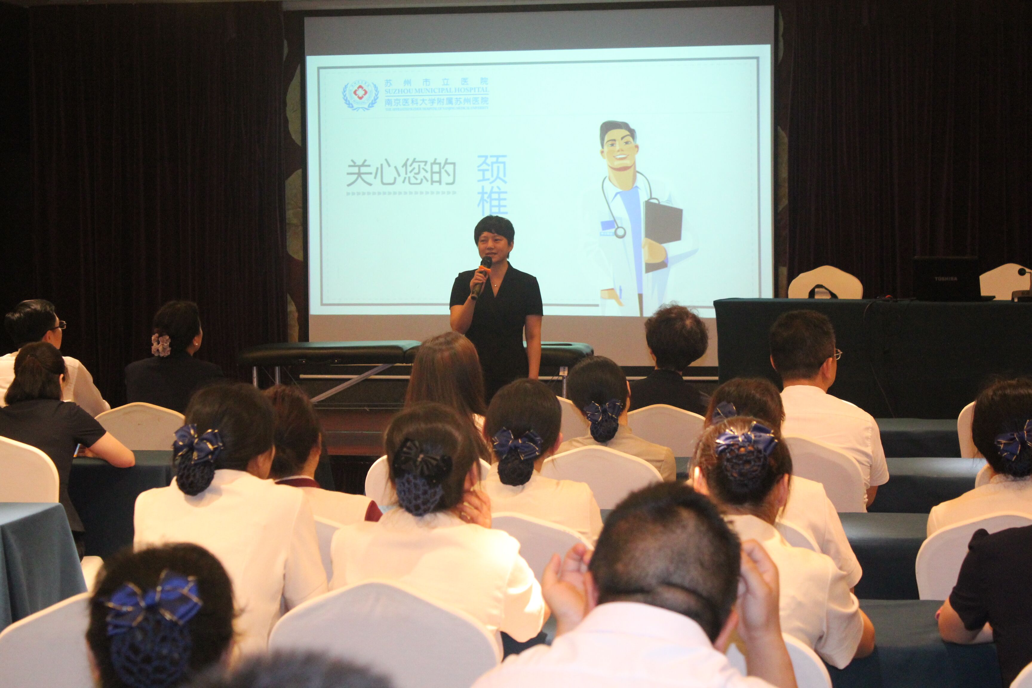 为了使教职工养成良好的生活、工作习惯,增强认识、预防和治疗颈腰椎等慢性疾病的能力和意识,提高健康素养,改善生活质量。酒店管理系(三元宾馆)分工会于2019年6月21日下午,在宾馆四楼多功能厅举办主题为《颈腰椎病的治疗预防》的健康知识讲座。特邀苏州市市立医院本部康复医学科翁主任和张主任主讲。