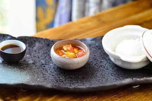 秃黄油,是苏州的方言,秃是“只有”或“独有”的意思;黄油,即高纯度的蟹黄,不允许有一丝蟹肉存在里面,因而不同于夹杂了蟹肉的蟹粉。秃黄油实在出蟹后取出蟹膏蟹黄,加上透熟的肥膘末,然后用葱、姜爆香,再用黄酒焖透,高汤调味,最后再淋上猪油和洒上胡椒粉便成。成品芬芳馥郁,美艳不可方物,配以杭白菊调制的香米饭或特制面条,使客人在味蕾上得到一种全新的美食冲击,可谓中华美食最高境界。