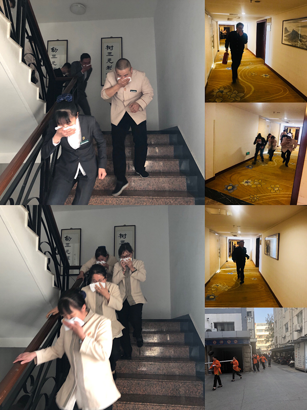今年苏州自入秋以来,少雨且温度居高不下,虽然气候舒适,景色怡人,但是天干物燥,极易引发火灾事故。今年的消防安全形势不容乐观,国内外发生多起火灾事件,造成重大的财产损失和人员伤亡。11月14日下午,三元宾馆为有效防范和化解消防安全风险,切实提高宾馆全体员工的消防安全意识和应急疏散能力,年度的消防应急演习在一阵阵的警报声中拉开帷幕。报警后两名保安迅速赶到四楼客区模拟着火点扑灭火源,客房、餐饮等区域的员工在义务消防员的统一指挥下一边通知客人一边分别从不同的疏散通道组织疏散到宾馆广场。通过这样火场逃生的模拟演练,使员工们更加实际掌握疏散的各种要领和技巧,更加具有实战经验。疏散演习结束后,大家聚集到宾馆广场上进行消防器材的操作演练,广场上一只大铁桶里燃烧着熊熊烈火,供大家练习使用干粉灭火器灭火,模拟油锅着火,练习使用灭火毯灭火,义务消防员进行消火栓灭火操作练习,员工们积极参与,都非常珍惜实际操作的机会。