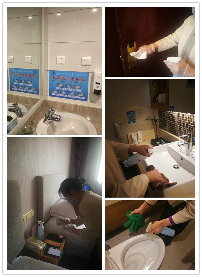为充分保障宾客和员工的安全,疫情防控期间,宾馆在门卫设立员工体温检测点,在大堂设立宾客体温检测点,对宾客严格执行入住“三步骤”即测体温、查看苏城码、查验个人轨迹。并消毒洗手,佩戴口罩。设置口罩处理专用垃圾桶。宾馆设置“留观室”,宾馆内消毒工作全面升级,针对电梯、公共区域、洗手间、客房、餐饮、员工宿舍、行政办公区等场所实施定时专人消毒、保持自然通风。为避免人员密集,严格控制上班人数,各部门根据工作需要按需排班。上岗员工实行“三错峰”措施,既错峰上班、错峰取餐就餐、错峰下班。宾馆已开通客房网络预订平台,提供房内送餐,筹备开办“苏惠美食”外卖业务。宾馆通过多项举措,扎实做好疫情防控工作,在确保疫情防控万无一失的前提下,有序开展返岗复工复业,以积极姿态开拓市场,恢复经营,以守业等待市场复苏。