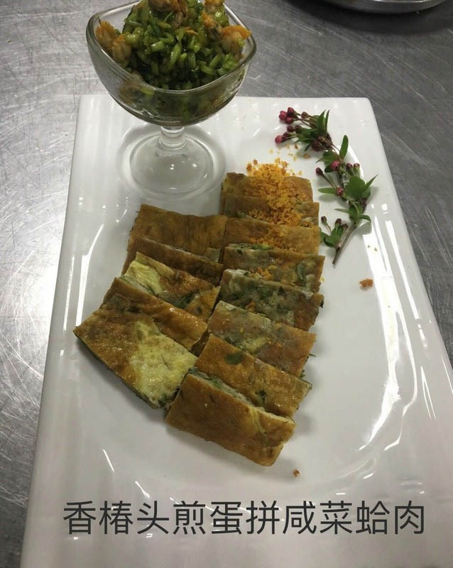 香椿头煎蛋拼咸菜蛤肉