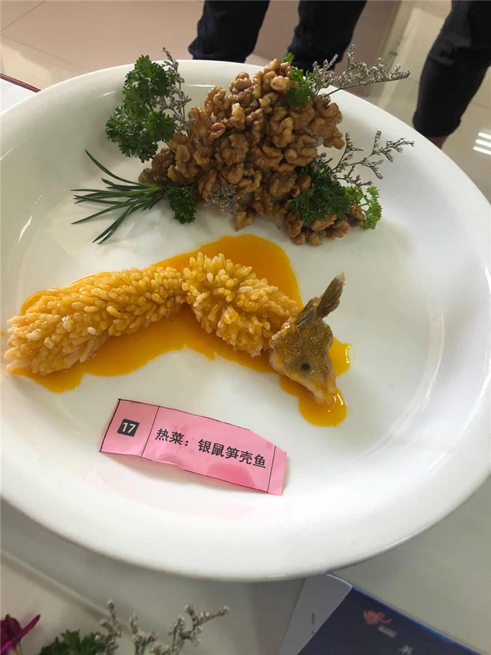 比赛现场,邹总厨忙而不乱,洗、切、摆,不一会又转战灶台,炉火冲天、菜香扑鼻,展示了深厚的厨艺功底。美味的佳肴不仅是几味食材的简单拼凑,而是厨师们精益求精所创造出来的灵魂产物。经过近两小时紧张激烈的角逐,邹总厨的冷菜“苏式熏带鱼”、热菜“银鼠笋壳鱼”完美的出品,精美绝伦、富有创意的佳肴让观众大饱眼福,并征服了评委,受到评委的一致好评,最后荣获第八届上海市“中华杯”职业技能竞赛长三角总厨中式烹饪项目创意奖。