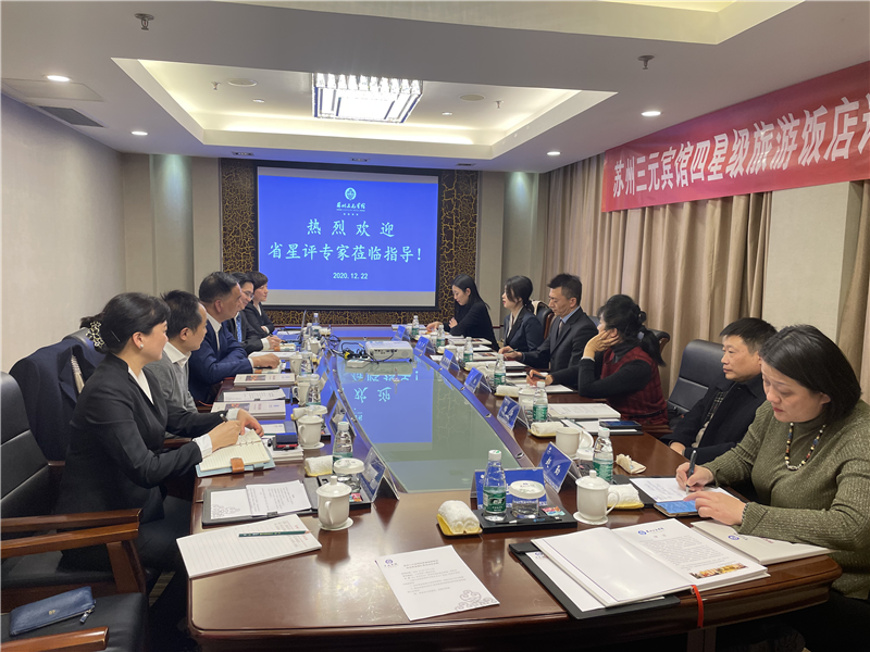12月22日下午三点在宾馆三楼会议室召开四星级旅游饭店评定性复核工作汇报会,三位星评专家、市文旅局、区教体文旅委领导、学院党委书记崔伟同志、宾馆班子成员参加会议。本次四星级旅游饭店评定性复核工作由听取汇报、察看现场、查阅资料、评定考核打分、召开反馈会议五个部分组成。三位星评专家对宾馆软、硬件建设、安全生产、清洁卫生、服务质量等多个方面进行现场察看和服务项目测试,同时对宾馆规章制度、操作流程、服务规范及各类台账进行详细查看,星评专家们认真仔细对宾馆进行了全面体检,一直工作到凌晨两点完成全部考核打分,专家组一致认为宾馆基本达到四星级饭店的规范标准和要求,同意宾馆通过本次四星级旅游饭店评定性复核。