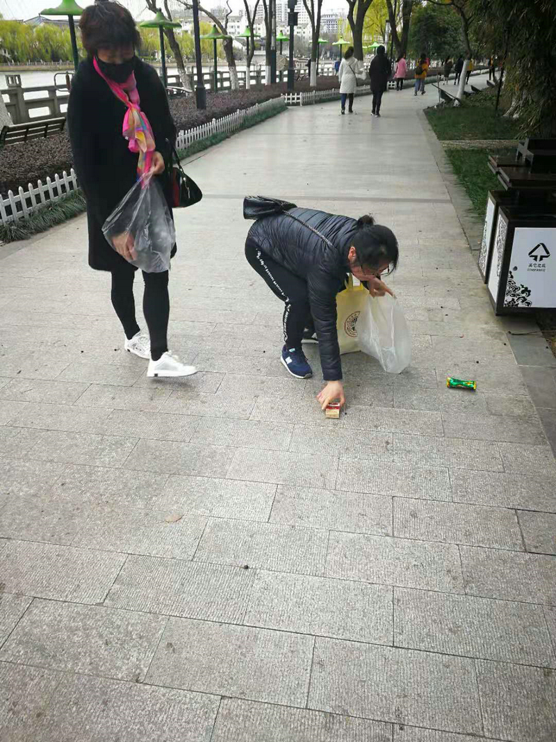 捡拾道路上的垃圾
