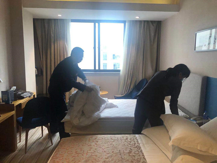 党员就是旗帜,大事难事看担当,今年以来,因疫情影响,宾馆经营工作忙闲不均,宾馆面临用工难问题,在这样的关键时刻,酒店管理系(三元宾馆)第一党支部以基层党建“书记项目”彰显榜样力量,全体党员干部坚决扛起责任,自觉践行初心使命,当先锋、作表率,挺身而出、冲锋在前,以实际行动为党旗增辉添彩,党员干部组织成立了“突击队”,经营繁忙时充实一线,帮助部门解决实际问题和困难,在客情紧张的时间节点,协助客房清扫房间、餐饮跑菜服务等,截止到11月底,党员、干部“突击队”共计出动103人次,清扫房间165间,餐饮跑菜6次。