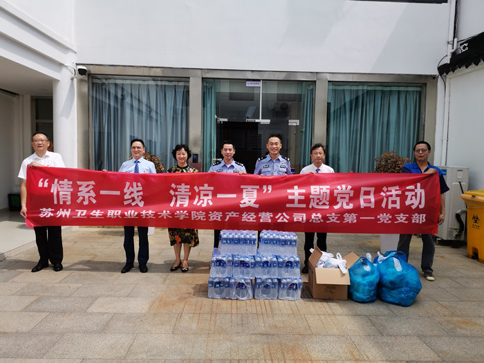 入夏以来,苏州天气持续炎热,热浪袭人,一线公安干警头顶烈日,不辞辛苦,坚守在工作岗位上。7月18日上午,资产经营公司第一党支部组织开展了“情系一线  清凉一夏”夏日送清凉主题党日活动。在总支书记卞瑾、副书记朱伟的带领下,一支部全体党员带着金银花、毛巾、风油精、矿泉水等慰问物品来到所在辖区的沧浪派出所,为坚守在一线岗位的全体公安干警送去一份清凉,带去辖区企业的关爱与支持。