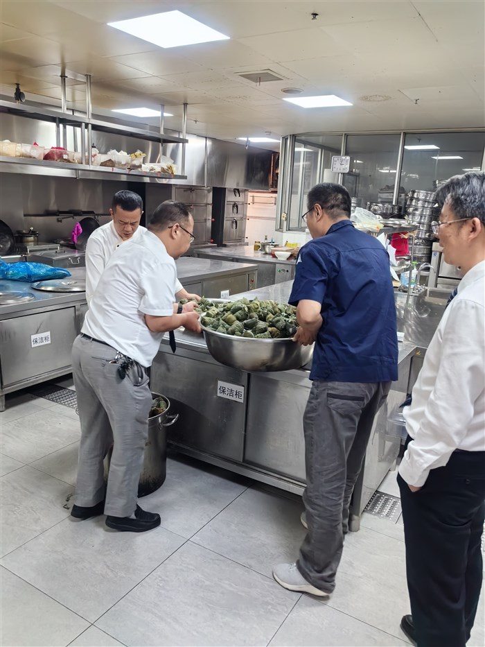 活动前期,支部全体党员们和社区工作人员通力合作,准备了丰富的包粽子材料,包括糯米、粽叶、肉类、红豆、蛋黄、红枣和蜜枣等,确保每个环节都安排到位。5月29日下午,支部党员、社区工作人员和热心居民们,围坐在宾馆食堂,大家分工合作,互教互学、争先恐后的参与到包粽子的过程,在愉快和谐的氛围中共同分享端午节包粽子带来的乐趣与体验。活动最后,社区工作人员将包好、煮熟的爱心粽子纷纷送到社区孤寡老人们家中,所到居民家每位老人脸上都洋溢着幸福的笑容,感受到端午的浓浓氛围和节日仪式感。此次主题党日活动为党支部和社区共建创造了良好的互动交流平台,深化了彼此之间的理解与合作,展现了新时代党建工作的生机与活力,为建设和谐社区凝聚人心打下扎实基础。